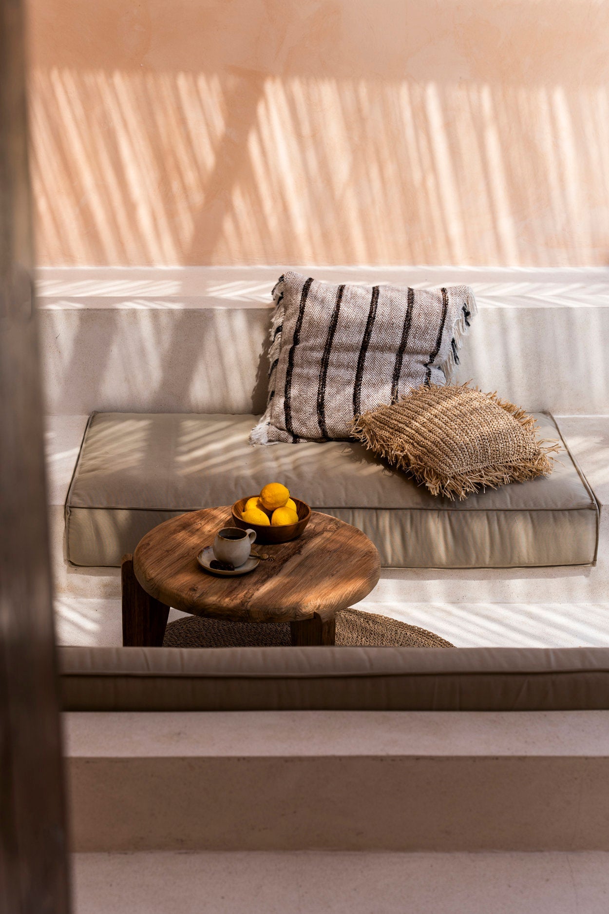 This cotton cushion will add a beautiful texture to your interior. An essential piece to create a bohemian atmosphere in your living room, bedroom or even outside in the garden or on the covered terrace. The colour is bohemian white, with a width of 60 cm and a length of 60 cm. It comes without inner cushion and is made of soft cotton.