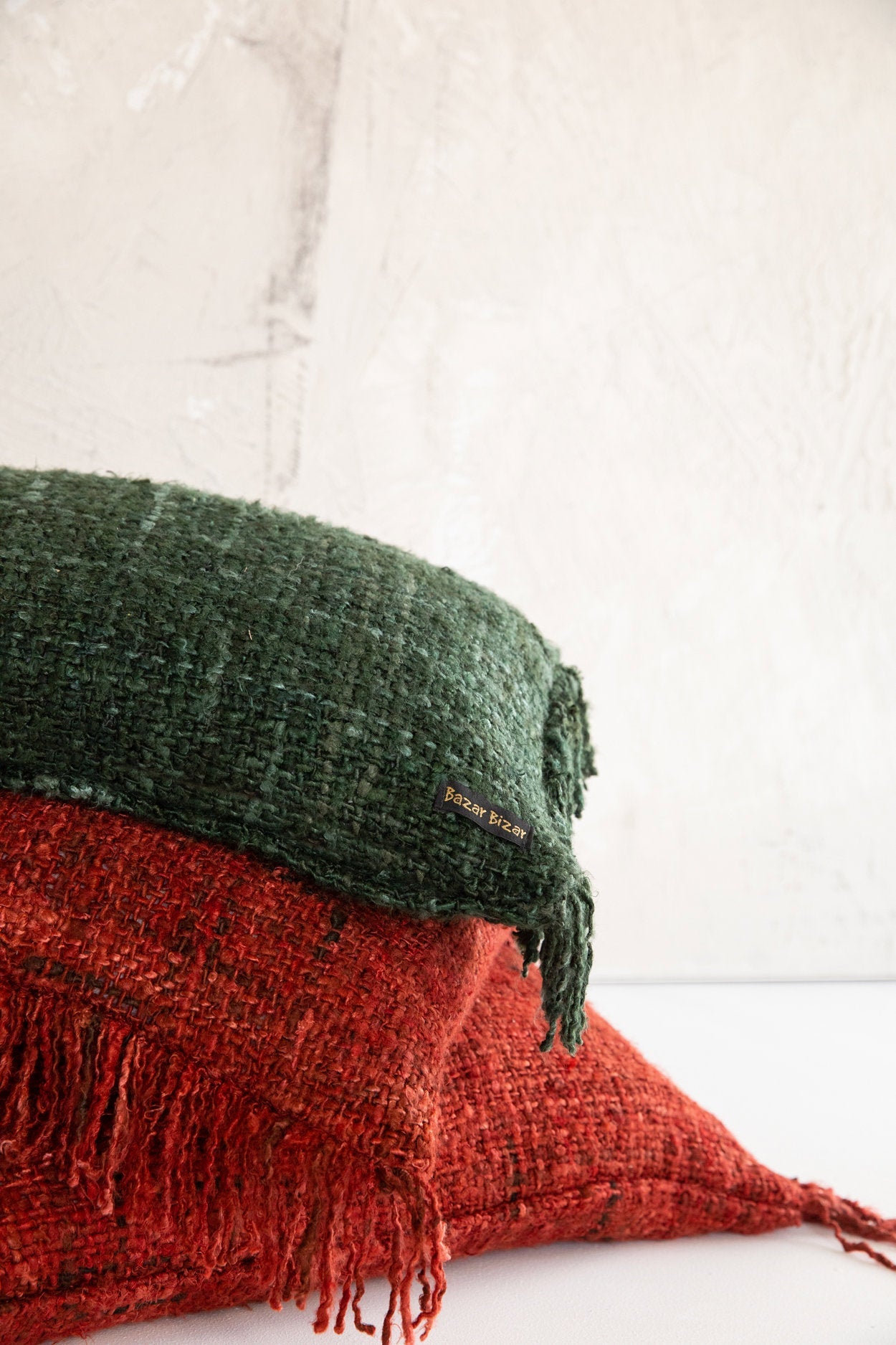 This cushion will add a beautiful and chic element of texture to your soft furnishings. A must-have piece to give your interior, garden or patio a boho touch. It offers endless possibilities to create your personal style. The colour is cherry red, with dimensions of 50 cm wide and 30 cm long. The cushion comes without inner cushion and is made of soft cotton.