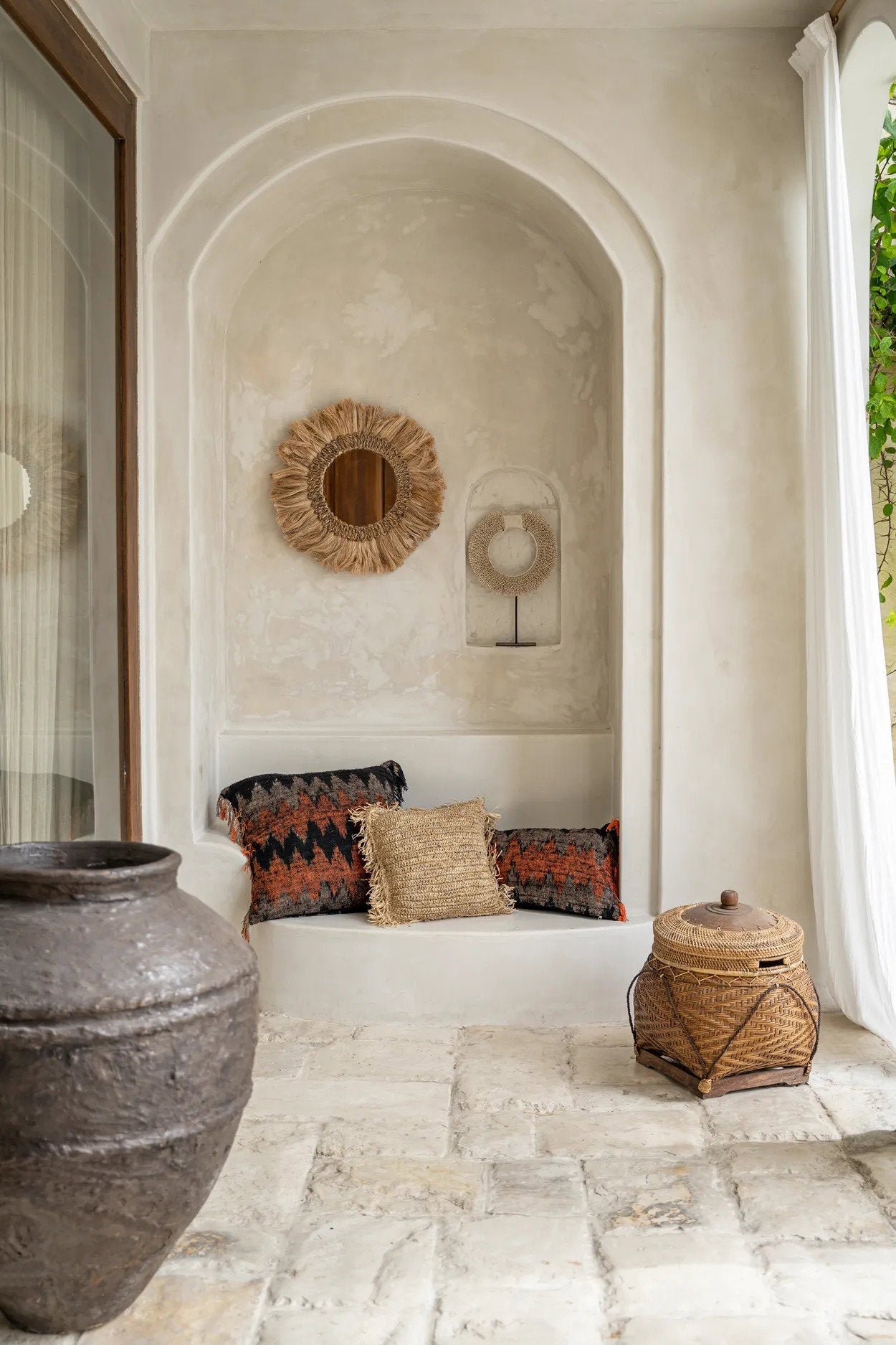 This cotton cushion adds an elegant textural element to your interior. It is an essential piece to create a boho atmosphere in your living room, bedroom or even outside on your terrace. The cushion is black-orange in color, has a size of 60 x 60 cm and is delivered without inner cushion. Made of soft cotton, it feels luxurious and comfortable.