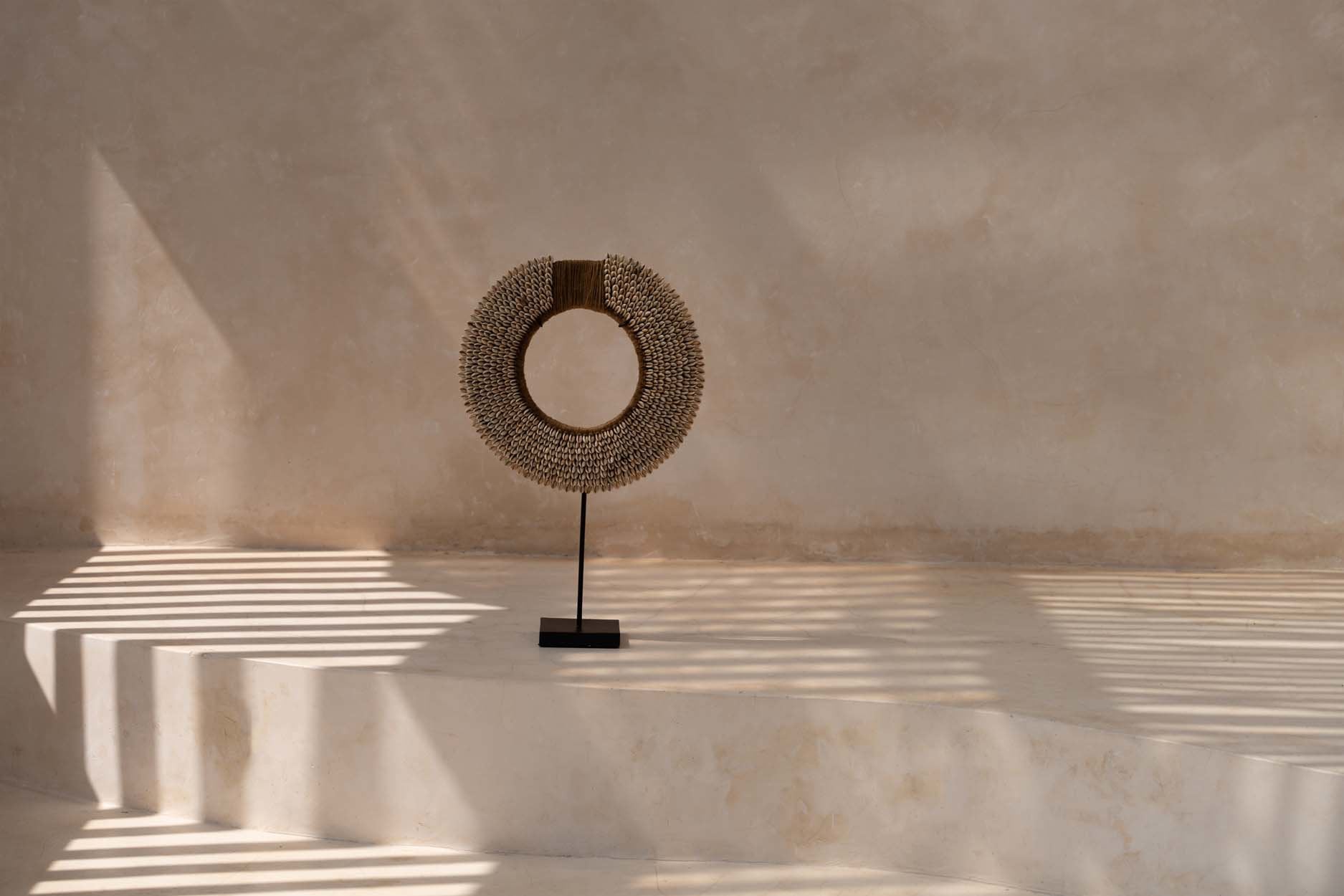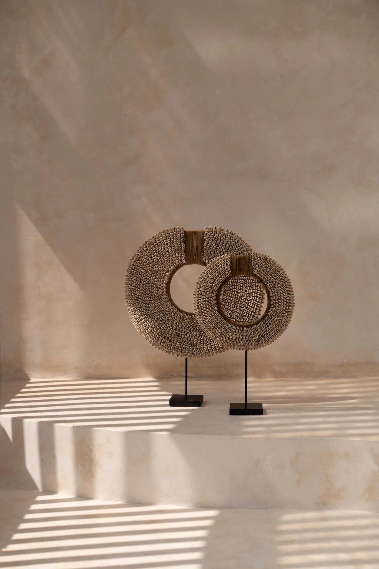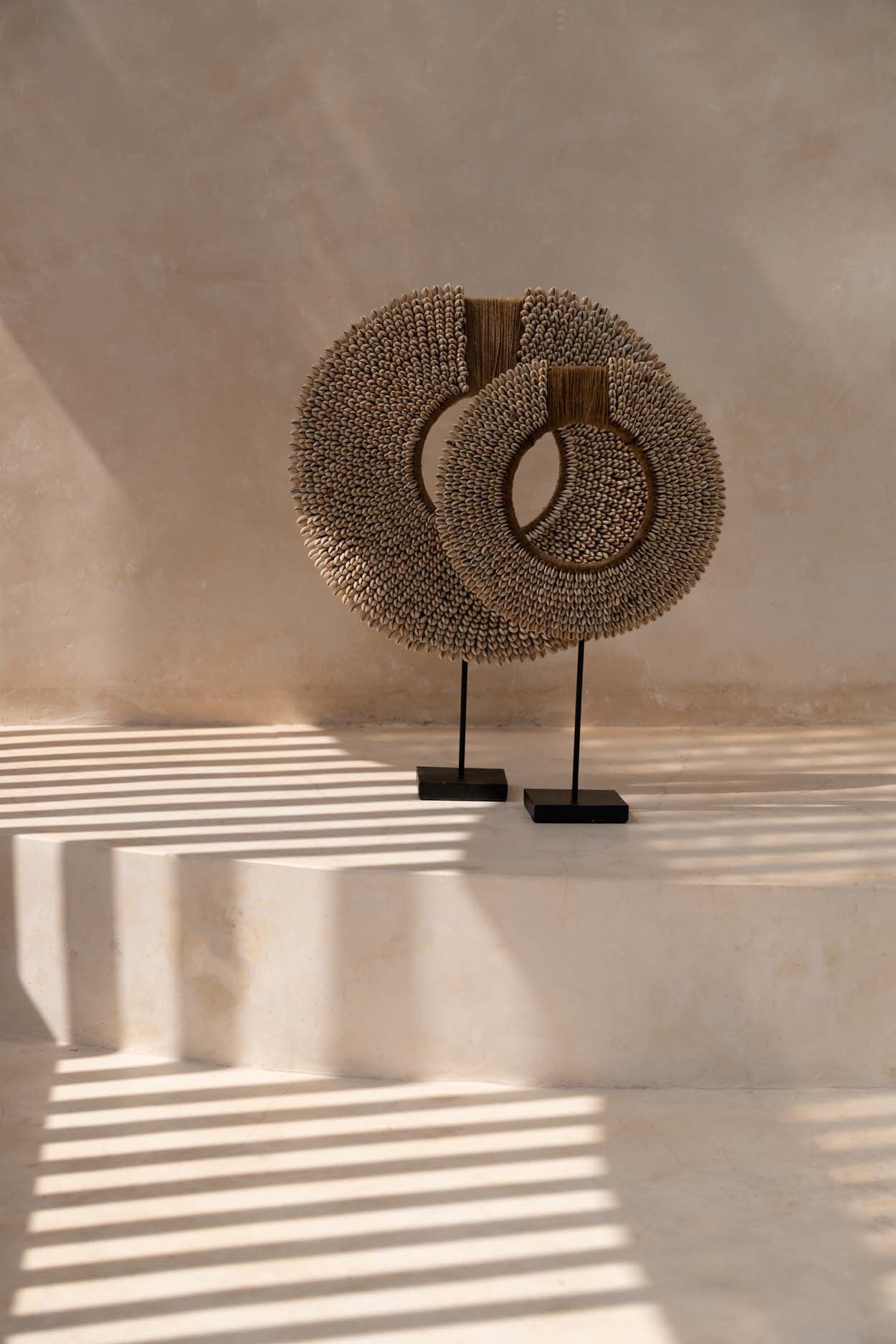 Each piece is hand crafted to showcase the unique variations in color and texture of the shell, meaning no two are exactly alike. Material: Shell. Height: 52cm. Length: 10cm. Width: 44cm. Stand Included: Yes. Shipping Type: Parcel. Color: Natural.