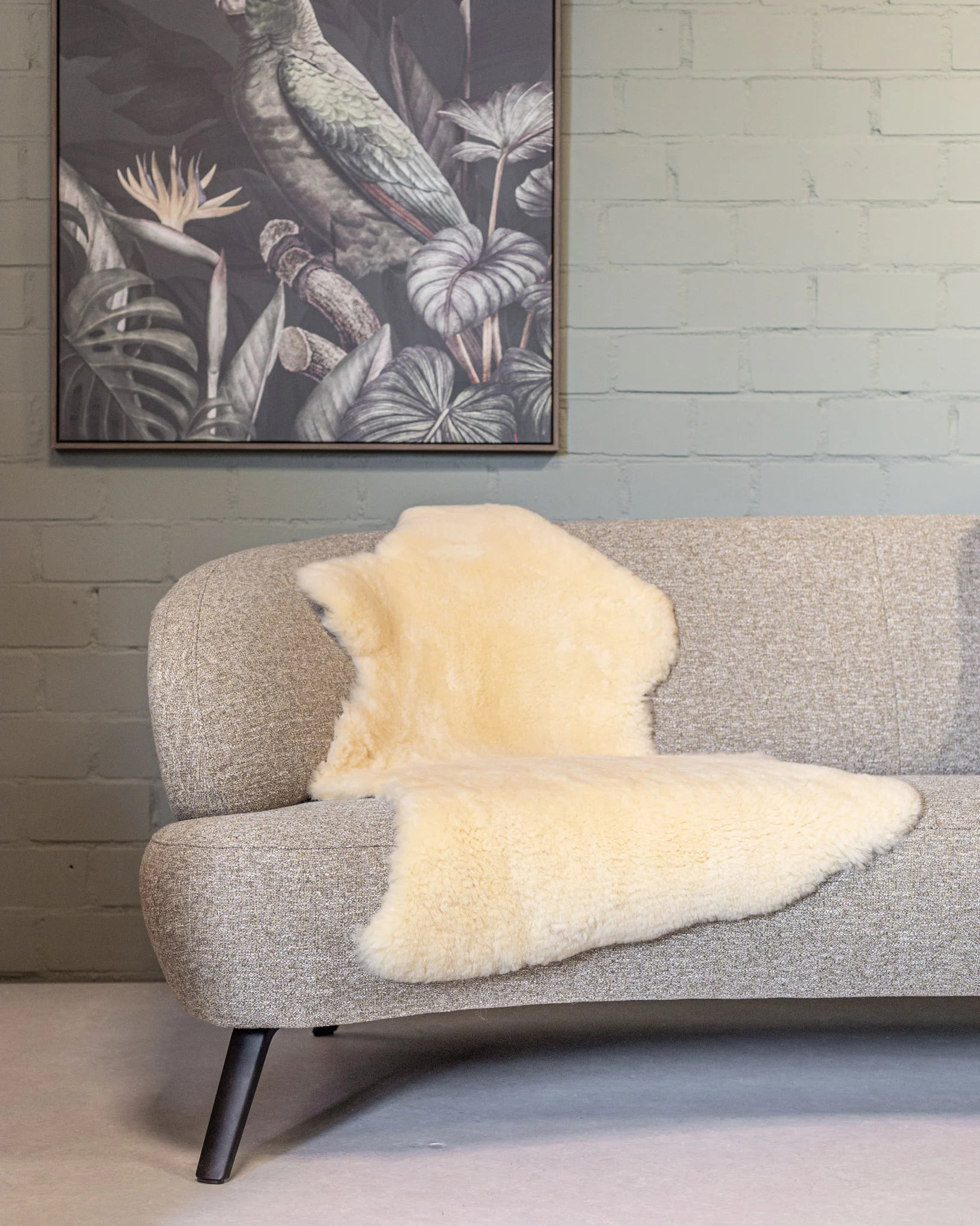 Daardat de vacht op een speciale manier gelooid is, heeft het zijn kenmerkende gele kleur. Ook zorgt deze manier van looien er voor dat de vacht wasbaar is. Mocht je de vacht willen wassen, doe dit dan op een wolwasprogramma van 30 graden. Wring de vacht na het wassen voorzichtig, maar goed uit. Laat het daarna zonder bijkomst van een warmtebron drogen. Dus niet in de zon, over de kachel of in de droger.