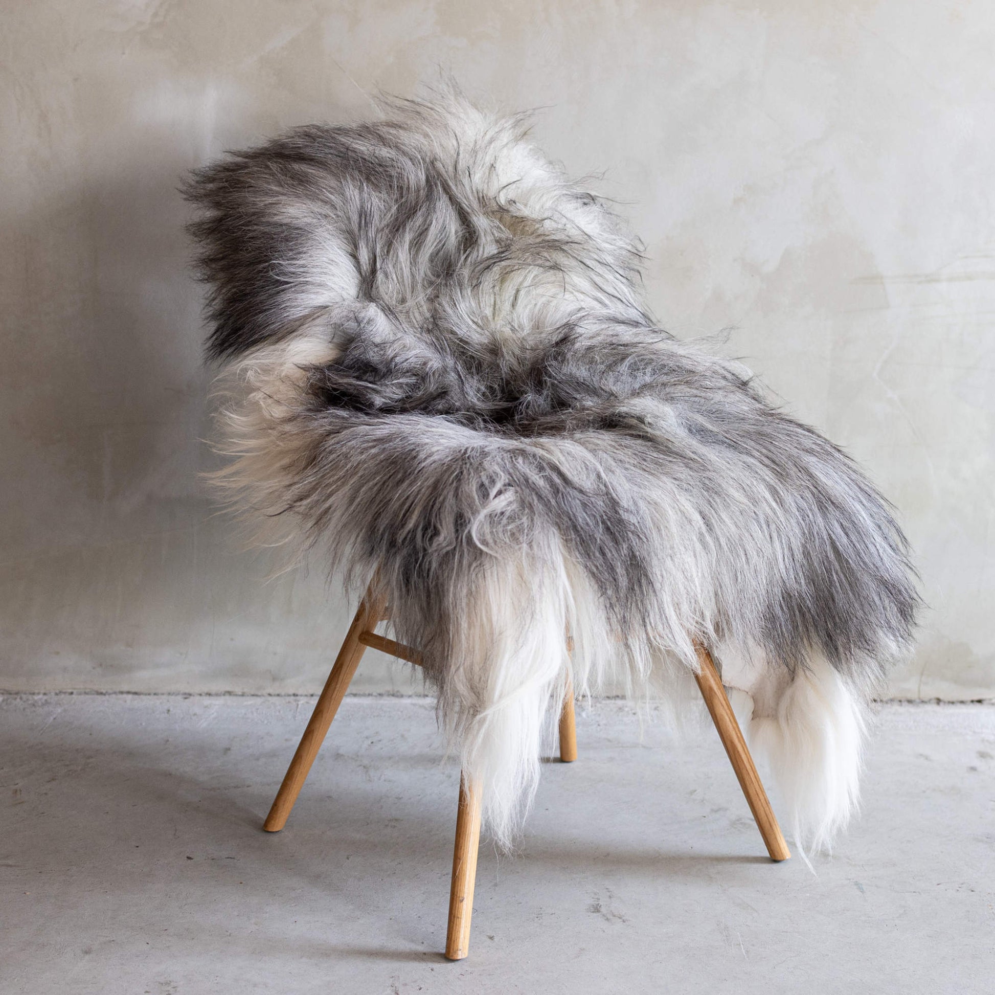 Het vacht kan onderhouden worden door te kammen, uit te kloppen, te stofzuigen en te benevelen. De wollengte is ongeveer 10-15 cm en de kleur is natuurlijk grijs. Dit schapenvacht behoort tot het IJslandse ras en is niet wasbaar.