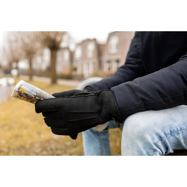 Prachtige heren handschoenen gemaakt van soepel suéde met een voering van schapenwol.