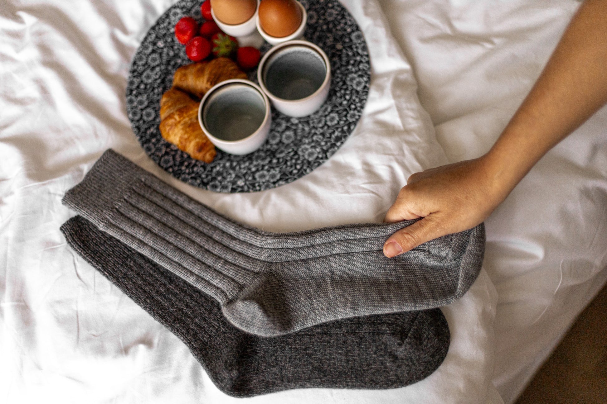 Deze zachte, antracietkleurige wollen sokken zijn een subtiele luxe voor koude dagen. Het fijngebreide wol voelt aangenaam op de huid, houdt je voeten warm en reguleert vocht zodat ze droog en fris blijven.