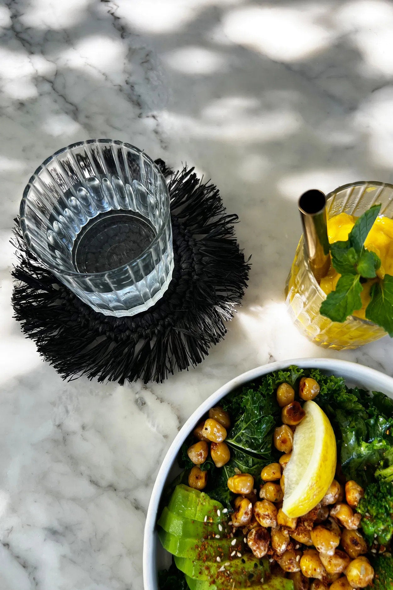 Dessous de verre en raphia à franges - Noir, lot de 4 pièces
