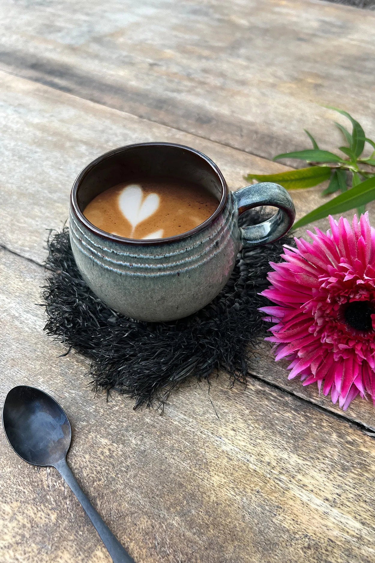 Utilisez ce joli dessous de verre sur une table basse ou associez-le à notre set de table en raphia pour une décoration de table. Légers et aux tons neutres, ils s'adaptent à la plupart des styles d'intérieur, aussi bien à l'intérieur qu'à l'extérieur. Ce dessous de verre noir élégant est fabriqué en raphia et mesure 10 cm x 10 cm.