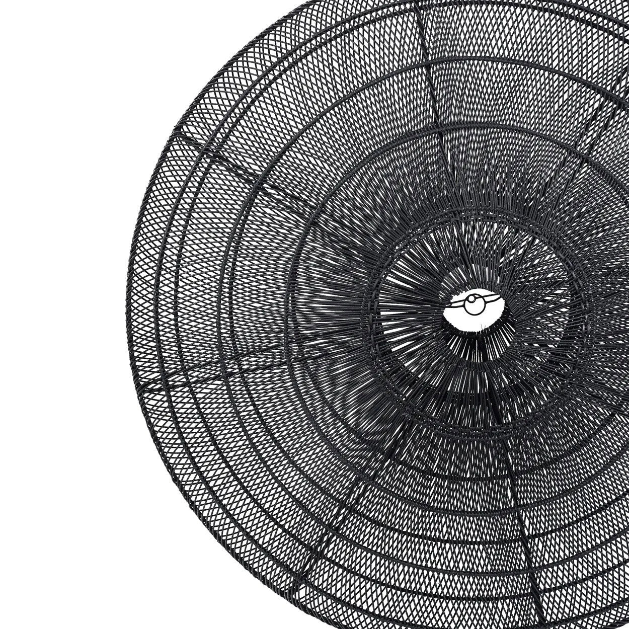 Deze op maat gemaakte lamp wordt met zorg vervaardigd om binnen 16-20 weken geleverd te worden. De lamp wordt geleverd met kabel en montageset, maar zonder fitting. De hoogte van 47 cm en de ronde vorm geven een unieke uitstraling aan elke ruimte. Gemaakt van rattan, met een indrukwekkende diameter van 150 cm en een tijdloze zwarte kleur die gemakkelijk past in elk interieur. Verzonden op een pallet voor veilige aflevering. Voeg een vleugje stijl toe aan je huis met deze exclusieve lamp.