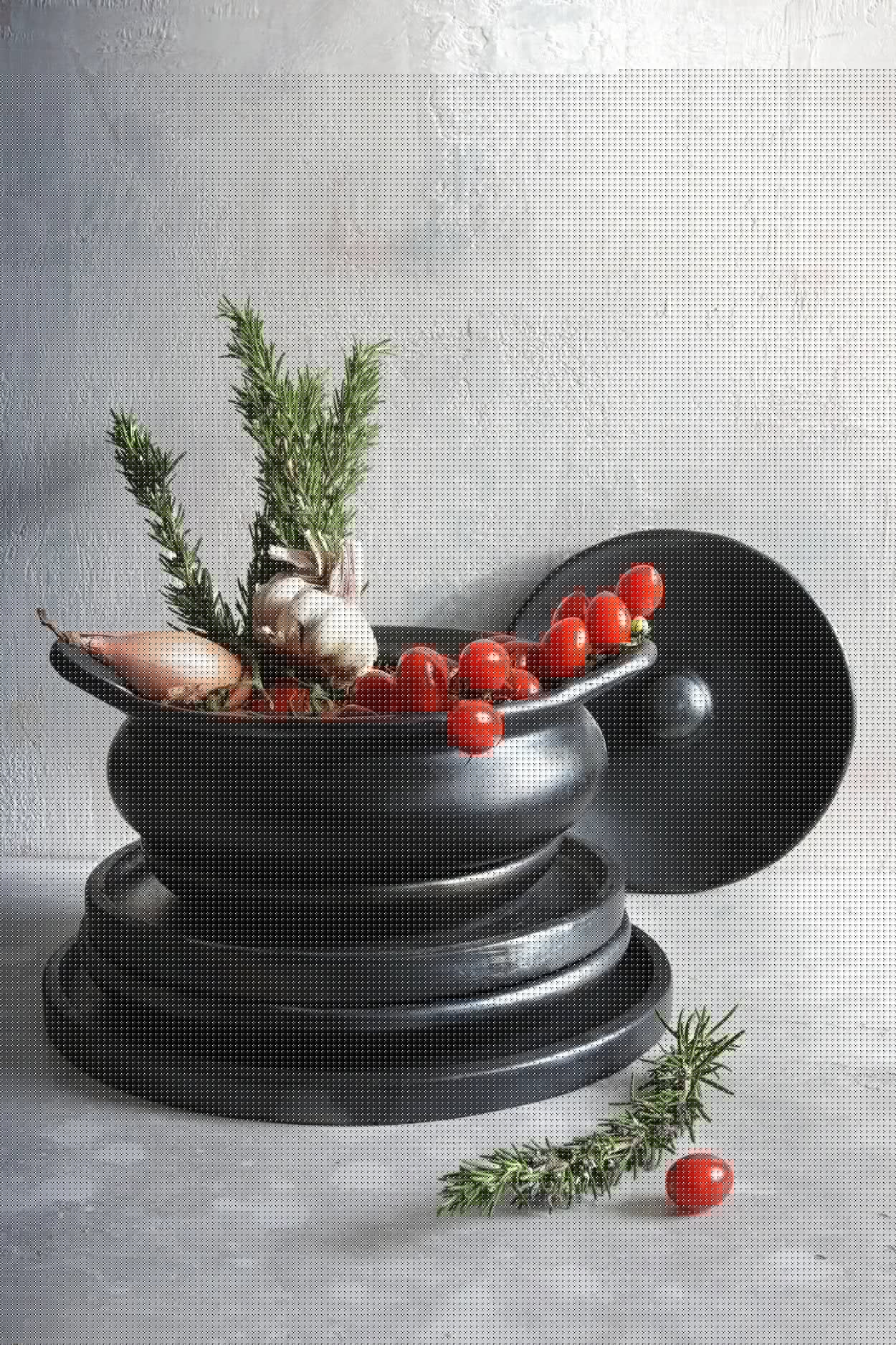 Pour les gourmands, rien n'est plus agréable qu'une table joliment dressée, des assiettes soigneusement choisies et un beau plat de service. On adore le design unique de ce plat de service avec couvercle. Noir, lavable au lave-vaisselle, en terre cuite brûlée. Convient pour un usage alimentaire. Dimensions : 10 cm de haut, 21 cm de large, 26 cm de long. Styles : Automne, Décoration d'automne, Boho, Décoration bohème, Bohème, Décoration bohème, Style côtier, Écologique, Wabi Sabi.