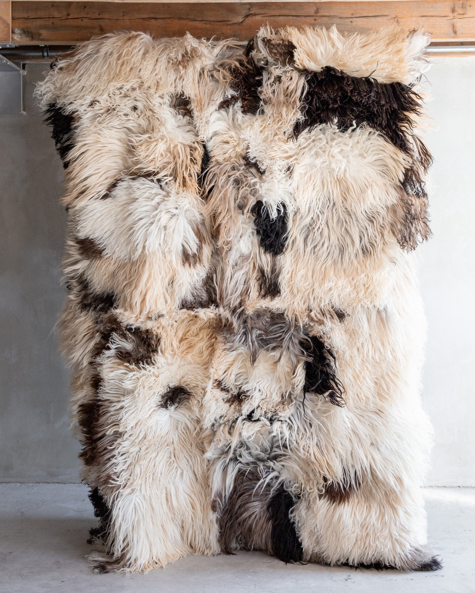 Dit unieke schapenvacht karpet met krullende wol is vastgelegd in een bijzondere foto, en u ontvangt precies hetzelfde karpet als op de afbeelding. Met een wollengte van ongeveer 5 tot 10 cm en een breedte van 150 cm en lengte van 200 cm, is dit handgemaakte karpet perfect voor elke ruimte. Het onderhoud is eenvoudig: regelmatig kammen, uitkloppen, stofzuigen en licht benevelen zorgen ervoor dat het karpet er altijd prachtig uitziet.