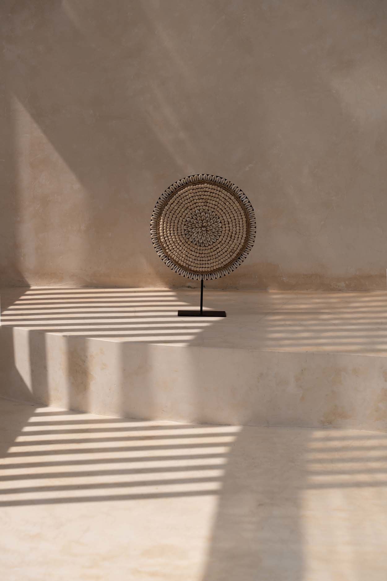 Ieder exemplaar is met de hand vervaardigd, waardoor de natuurlijke variaties in kleur en textuur van de schelp prachtig naar voren komen — geen twee zijn hetzelfde. Producttype: op standaard. Kleur: naturel wit. Materiaal: schelp. Herkomst: Indonesië.