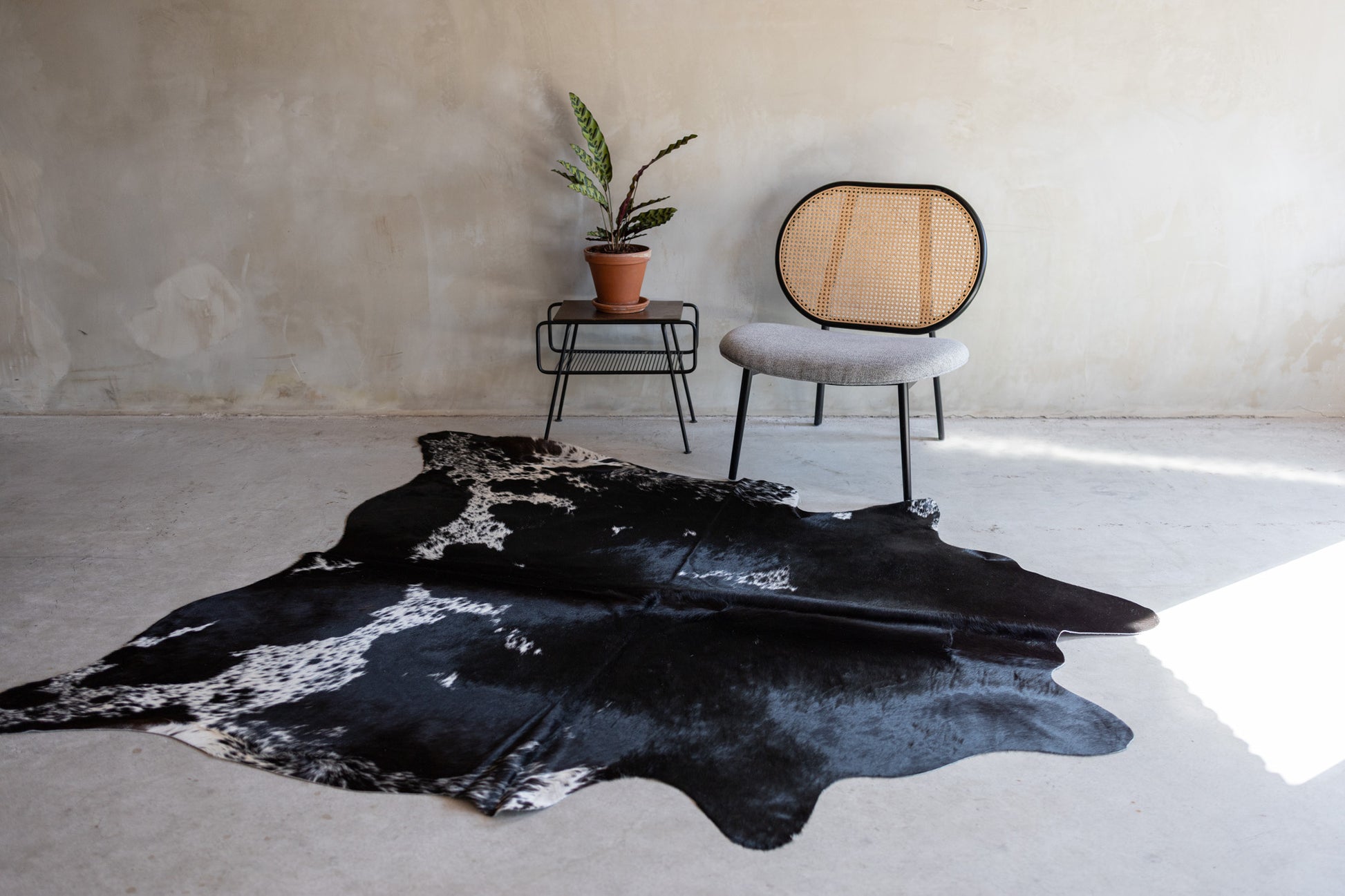 Deze unieke koeienvacht is vastgelegd in een foto, zodat u precies ontvangt wat u ziet op deze pagina. De kleur van de vacht is zwart/wit.